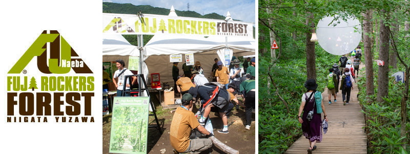 在FUJI ROCK,怀着对于苗场之森的敬重之情,以主办方SMASH为中心,我们将会携手新潟县、汤泽町、苗场的各位与来场的各位观众一起,实行保护森林活动【FUJI ROCK之森计划】。