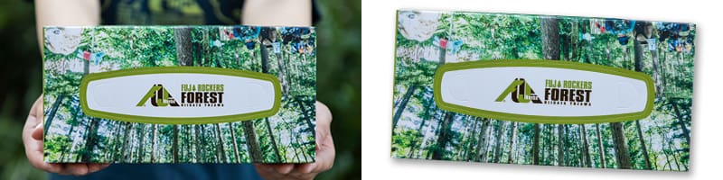 Fuji Rock纸巾盒是使用Fuji Rock纸生产的,而Fuji Rock纸是用再生纸制成的。纸巾盒上印有苗场森林的图案。该纸巾还可通过汤泽的 “故乡之采 ”计划作为礼物赠送。