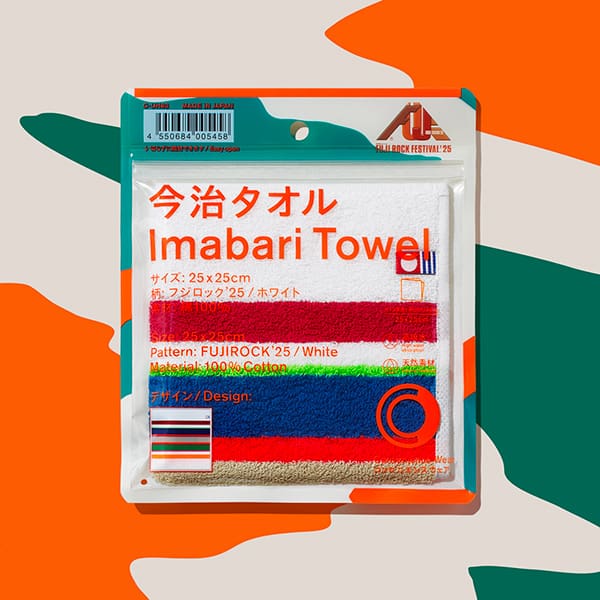 限量版毛巾手帕采用今治独特的高吸水性规格,设计灵感来自Fuji Rock ’25的主要视觉效果。